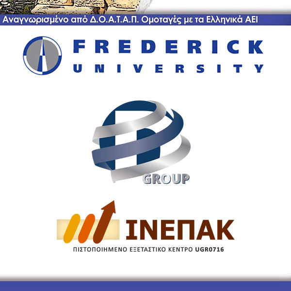Το ΚΔΒΜ ΙΝΕΠΑΚ ΙΚΕ Πιστοποιημένο Συνεργαζόμενο Κέντρο με κωδ. Αρ. UGR0716 της UCERT/Πανεπιστήμιο FREDERICK της Κύπρου για Προπτυχιακές και Μεταπτυχιακές Σπουδές Εξ Αποστάσεως, σας προσφέρει υπηρεσίες υποστήριξης για όλα τα διοικητικά – γραφειοκρατικά θέματα της εγγραφής σας και της παρακολούθησης των σπουδών σας καθ’ όλη τη διάρκειά τους, χωρίς πρόσθετη οικονομική επιβάρυνση.